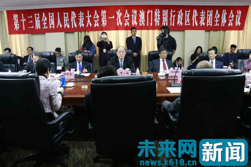 第十三届全国人民代表大会第一次会议澳门特别行政区代表团全体会议 未来网记者 程婷 摄