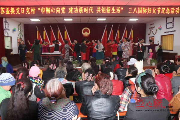 这是在自治区教育厅“访惠聚”驻村工作队和村委会联合开展的“三八”国际妇女节纪念活动现场上的一幕,活动采取表彰奖励、文艺表演、互动游戏、有奖问答等形式,充分展现乡村妇女风采,礼赞新时代,讴歌好生活。