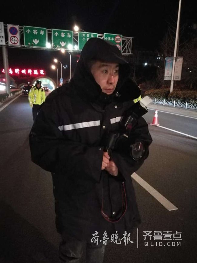 3月的岛城,尽管春意萌动,但依旧寒风刺骨。加上连日来的倒春寒,每个在外出行的人都希望赶紧赶到目的地,温暖舒服地坐下来喝杯热茶。而在室外的寒风中,有这样一群人,被称为“马路吸尘器”,在各自的岗位上挥动着手臂忙碌,为岛城道路交通安全保驾护航。8日晚,岛城气温降至-3℃,记者跟随胶州湾隧道交警中队开展“今天我当班”体验采访,在不影响交警正常履职前提下,体验一线交警深夜鏖战的一晚。4个小时滴水未进、没上厕所、脸被冻透、腿被冻僵……为的就是马路上多一份平安。