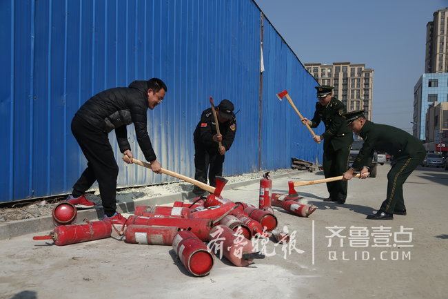 消防官兵正在销毁假冒伪劣消防产品
