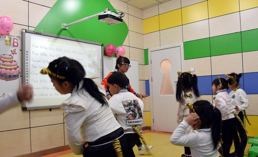 自2004年7月4日成立以来,天童美语一直致力于3-15岁儿童的英语教学,秉承着“天童专注儿童英语,所以更专业”这一信条,集合所有国内最优资源,经过坚持不懈的努力,连年创造全国学员在校期末成绩80%达到95份以上,40%夺得满分。天童美语采用国际先进的TPR肢体语言教学方法,全程英文授课,电子白板覆盖所有教室,采用大量互动的、游戏式的学习方式,激发孩子的英语学习兴趣,极大调动了孩子们学习英语的积极性和参与性,更有助于孩子们主动进入到学习情境中,轻松快乐地接受知识,在不知不觉中提高学习英语的能力。
