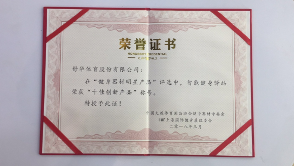 舒华智能健身驿站荣获“十佳创新产品”称号