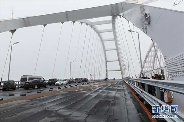 普京14日亲临视察时,随行官员还宣布,大桥道路部分将提前于今年5月9日即卫国战争胜利纪念日落成。