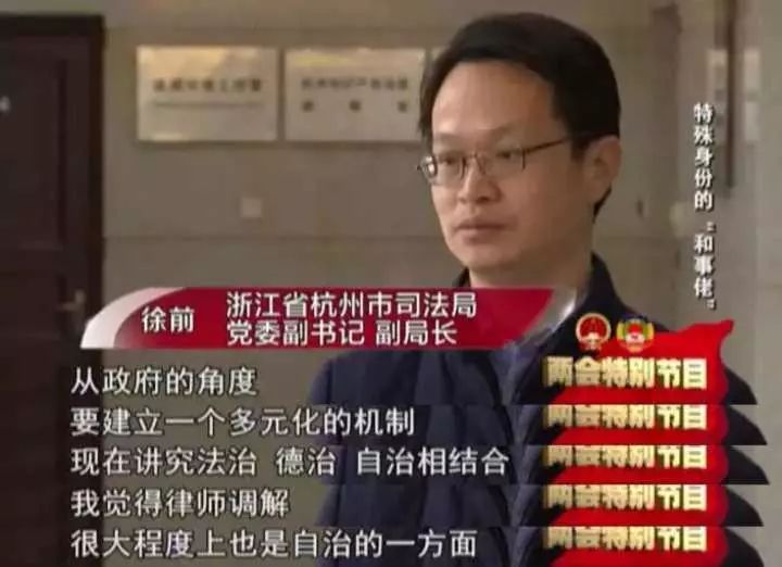 3月10日,中央电视台一套《今日说法》“两会特别节目”播出了《特殊身份的“和事佬”》。节目聚焦杭州多家法院正在进行的律师调解和公证参与司法辅助事务的试点,切入的案件正是柯直律师参与调解的一起离婚案。
