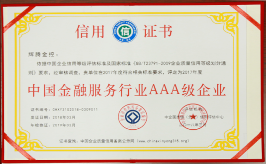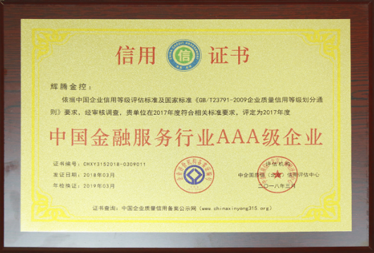 原标题:以信为本,辉腾金控受颁3A信用企业