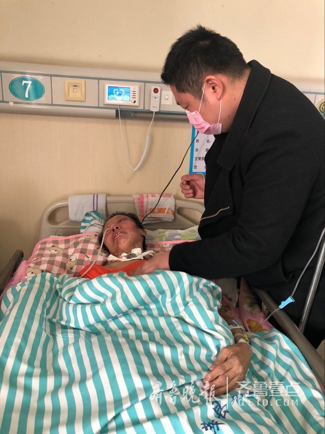 “眼泪哭干了,哭都哭不出来了。”3月12日上午,在聊城市莘县第二人民医院心脑血管病房内,赵兴乐正在给躺在病床上的母亲吸痰。赵兴乐的母亲,52岁的李学真躺在病床上,已说不出话,动弹不得的她身上插着胃管,憔悴不堪,面无血色。听着记者与赵兴乐的对话,李学真不停地抽泣。“说不出话,但心里都明白,她是担心这个家,心疼我们。”