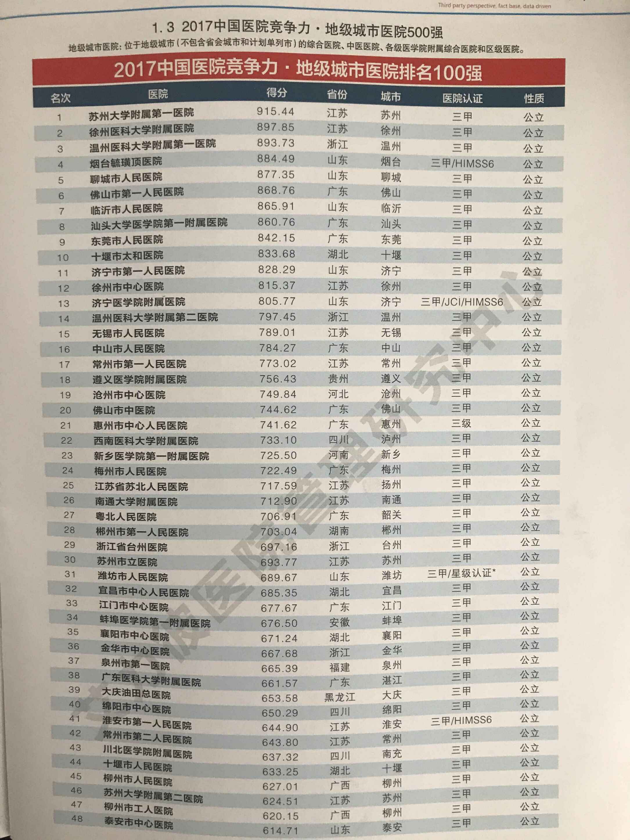 原标题:烟台毓璜顶医院名列地级城市医院竞争力百强第四位