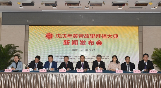 中原网讯 3月27日下午,戊戌年黄帝故里拜祖大典组委会在北京举行新闻发布会,宣布今年的拜祖大典将于4月18日(农历三月初三)在河南省新郑市黄帝故里景区举办,拜祖大典仍将沿用“同根同祖同源,和平和睦和谐” 主题,参加人员总体规模约8000人。