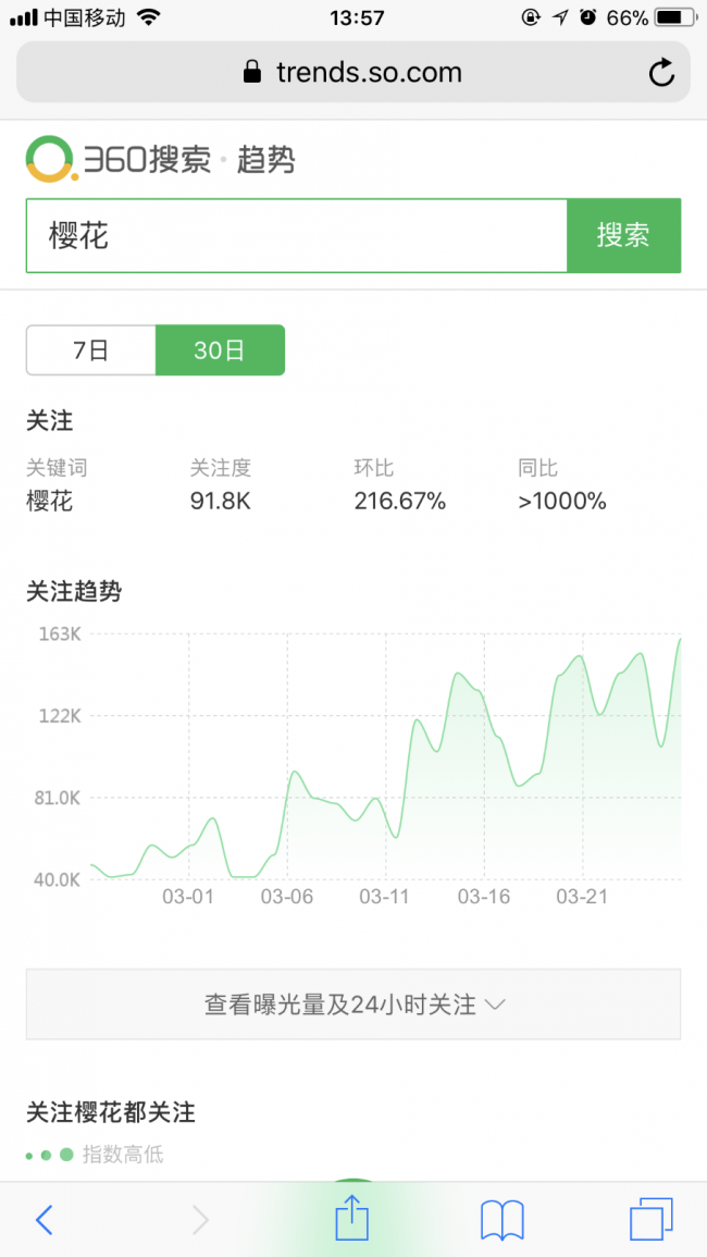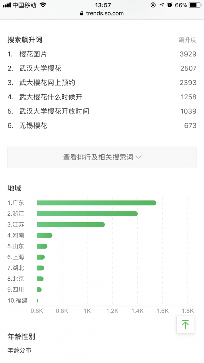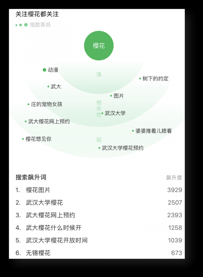 “三月赏樱,唯有武大。”这可不是平白流传的,网友从360趋势数据可以看到,与樱花相关的搜索词汇,多为武大樱花。