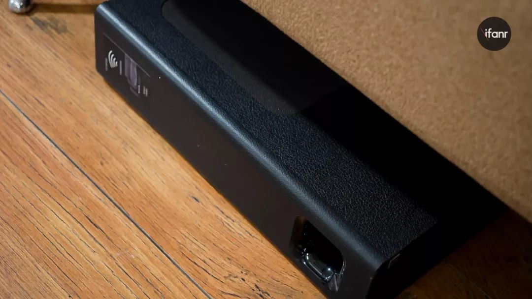 低音炮的机身厚度大概是9.5cm,这个厚度在横向摆放时也能够塞进大部分沙发和地面间的空隙上,进一步压缩摆放占据的空间。