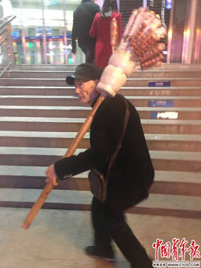 转行卖糖葫芦的廖神头,并没踏上致富路。才61岁的他,显然还不够“老”,只能和城管打游击战,“屁股一分钟都坐不下来”。他每天辗转不同商圈,有时去6公里外的观音桥,有时跑去24公里外的机场。最惨的时候,一天只卖出5根糖葫芦,吃饭加坐车倒贴了20元。