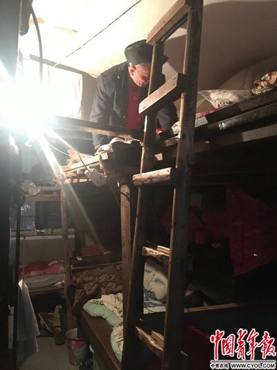 当他皱巴巴的脸和红彤彤的糖葫芦一起被镜头捕捉后,有网友惊叹,“这么老了竟还在卖糖葫芦!”记者跟随他回家,发现了一个更为震惊的事实:在这个黑黢黢的房间里,还住着这么多老头!而且跟学生时代的宿舍一样,密密麻麻全是高低铺。