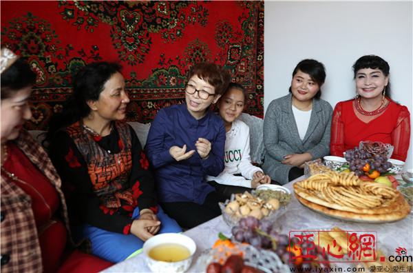 原标题:【民族团结一家亲】乌苏:“跟党走,好日子有奔头” 布鲁根(左三)向祖普努尔(左二)一家和左邻