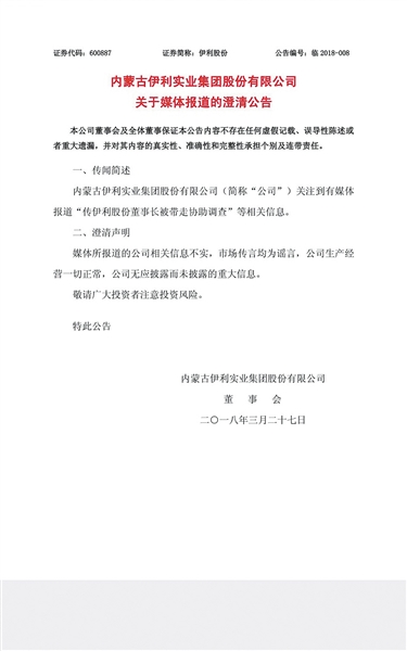 新京报:伊利方面怎么看待目前出现的这些传言事件?