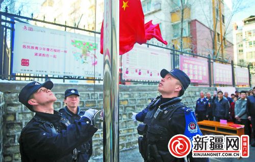 每周星期一早晨,各社区都会组织升国旗仪式,除了社区干部、“访惠聚”工作队干部,各族居民和辖区商户也主动参与进来。温泉北社区党支部书记赵玉说:“每一次升旗仪式,都会开展发声亮剑和宣讲活动,居民的参与度越来越高,影响范围越来越广。”