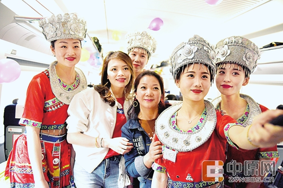 担当这次列车值乘任务的是郑州客运段高铁三队郑重一组。在列车上,乘务员化身“幺妹儿”,为旅客献上优美的舞蹈与甜美的歌声。