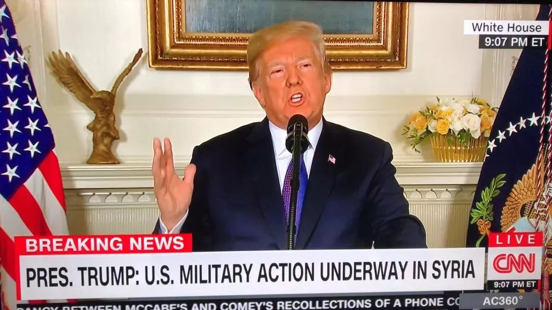 美国东部时间13日21时许,美国总统特朗普宣布,已下令美军联合英国、法国对叙利亚军事设施进行“精准打击”,作为对日前叙东古塔地区发生“化学武器袭击”的回应。