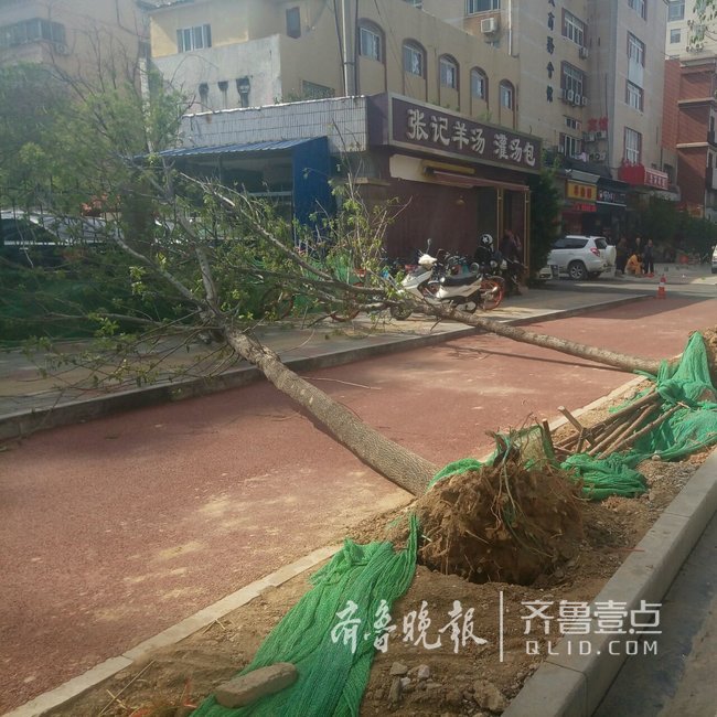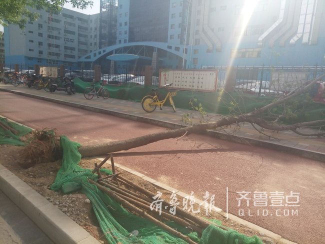 “这些树是昨晚才运过来的,因为时间太晚,所以还没来得及加支撑,没想到竟然会发生这种事情。”韩经理表示,为防止此类事情再次发生,后续新栽的树,会陆续加上支撑。