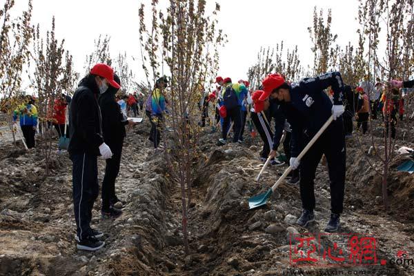 亚心网讯(记者 陈敬梅)"今天我们要卯足了劲儿,把这行树种完,下午赶着回去有事呢!"新疆维吾尔自治区教育厅的领队马富祥说,没想到不到12点半,他们就跟同组的小伙伴种完了那么长长的一行树。