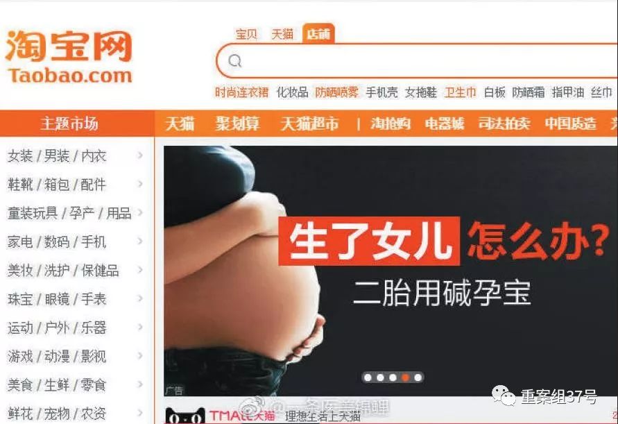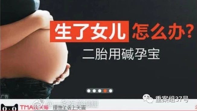 原标题:淘宝首页“碱孕宝”广告被指性别歧视,“阿里妈妈”道歉下架产品 “生了女儿怎么办?二胎用碱孕宝