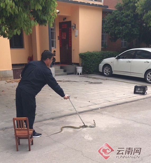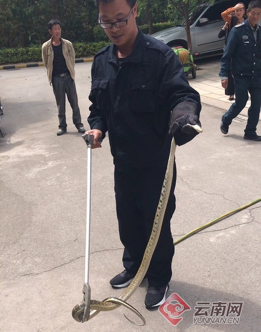 “菜花蛇”盘踞居民楼前 曲靖森警出动抓捕放生