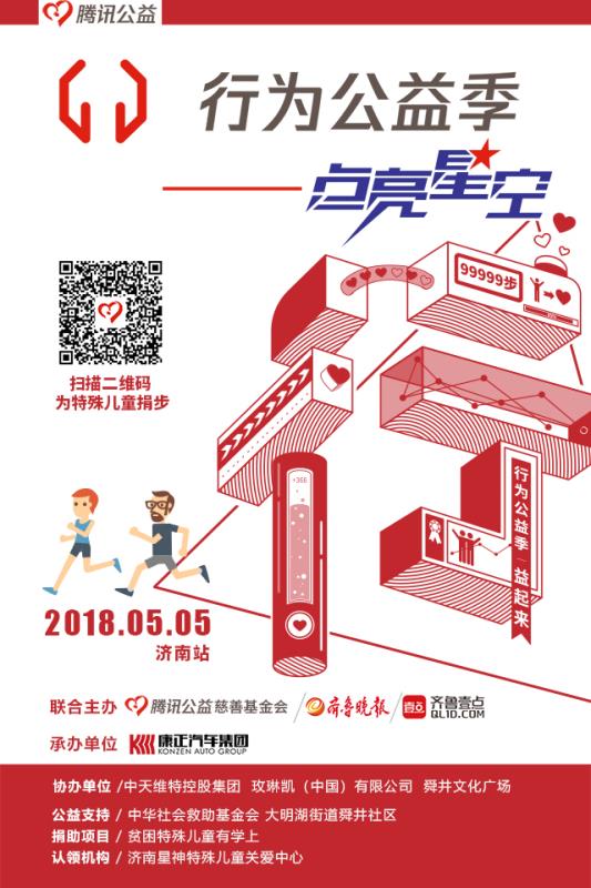 2018年,腾讯公益开启以“走路就是做公益”为主题的行为公益季。本届“行为公益季”济南站,齐鲁晚报联合腾讯公益发起“点亮星空”线下大型公益捐步活动,号召爱心企业和爱心人士一起,通过捐步的形式来为济南星神特殊儿童关爱中心的特殊儿童募集善款。
