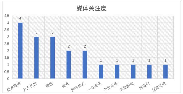 从媒体关注度TOP10可看出,新浪微博平台对该事件的关注度最高,相关信息量共4条,高于其他媒体。