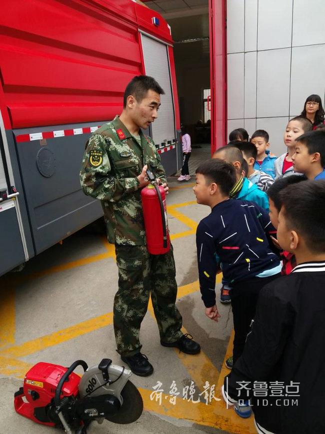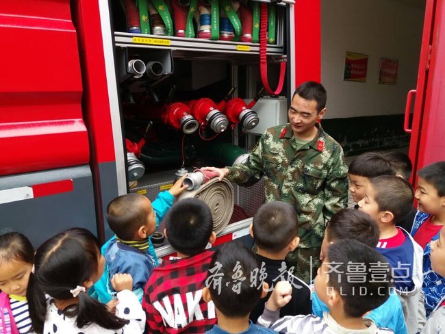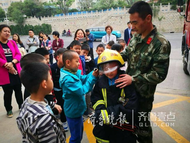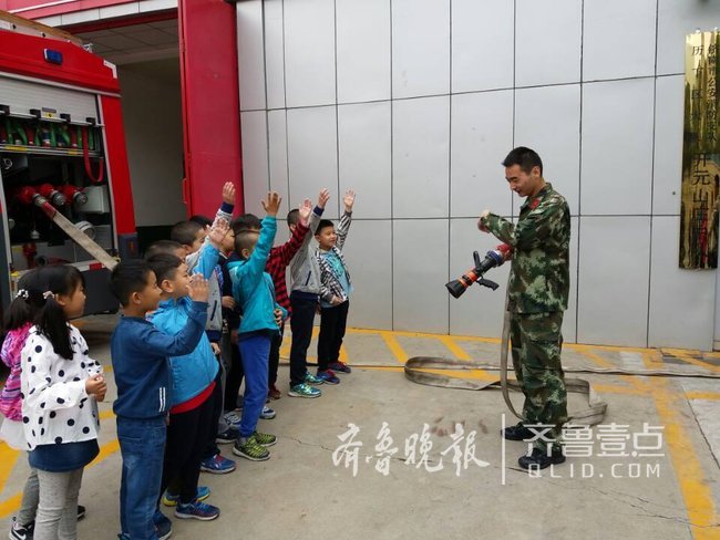 “拨打119,你知道该怎样向消防叔叔诉说火情吗”?“你知道在浓烟中应如何逃生吗”?5月6日上午,在济南公安消防开元山庄中队,消防官兵通过零距离的接触、互动为燕 山小学一年级八班的孩子们上了一堂生动的消防安全课。