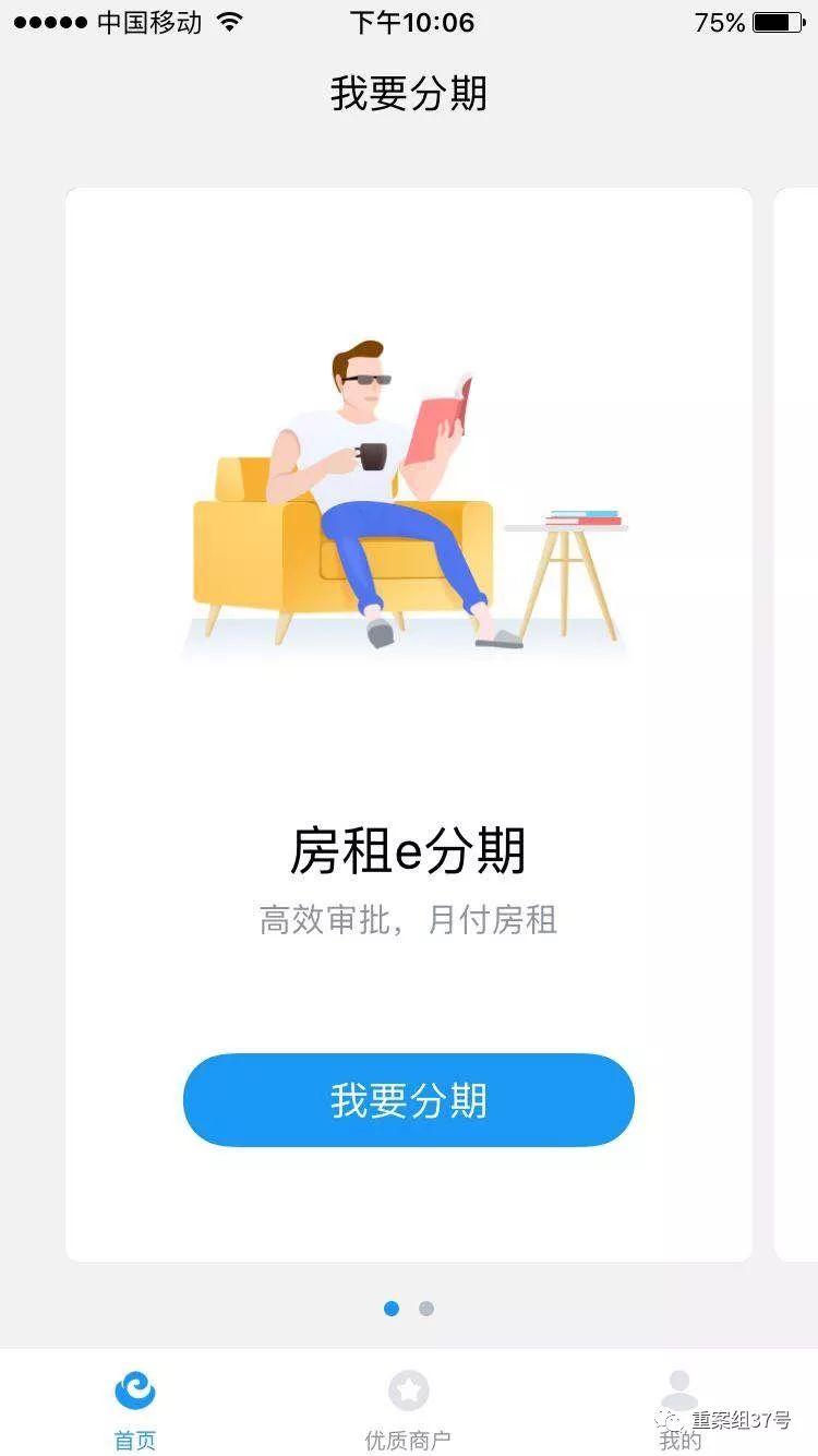 这名中介告诉重案组37号探员,元宝e家是与昊园恒业一起合作的一个“房租分期平台”。“这个平台说白了就是,把你一年的房租打给我们中介公司,你一个月一个月的往平台上还。啥都不用你出,每个月绑定一张自己的银行卡,这个银行卡余额够一月的房租就行,还没有利息。”