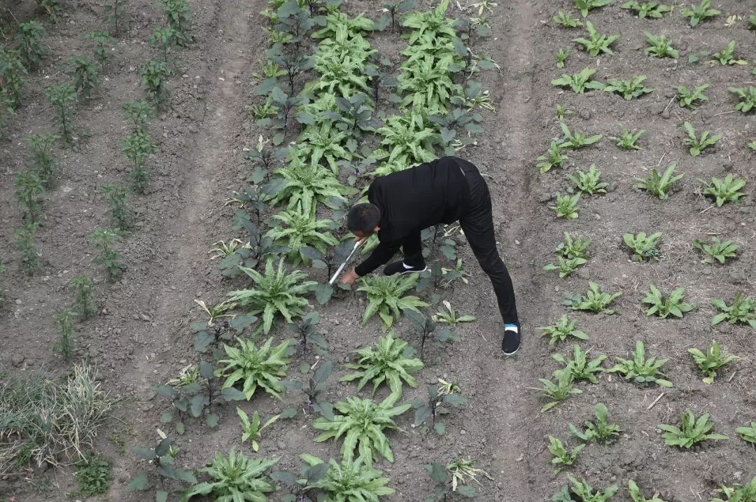 2018年5月1日,四川省绵竹市兴隆镇广平村,吴加芳正在自家院子里收拾自己种的菜。新京报记者尹亚飞摄
