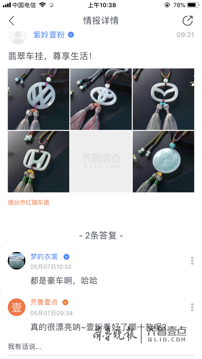 情报员“紫妗壹粉”9点21分发布消息:翡翠车挂,尊享生活。
