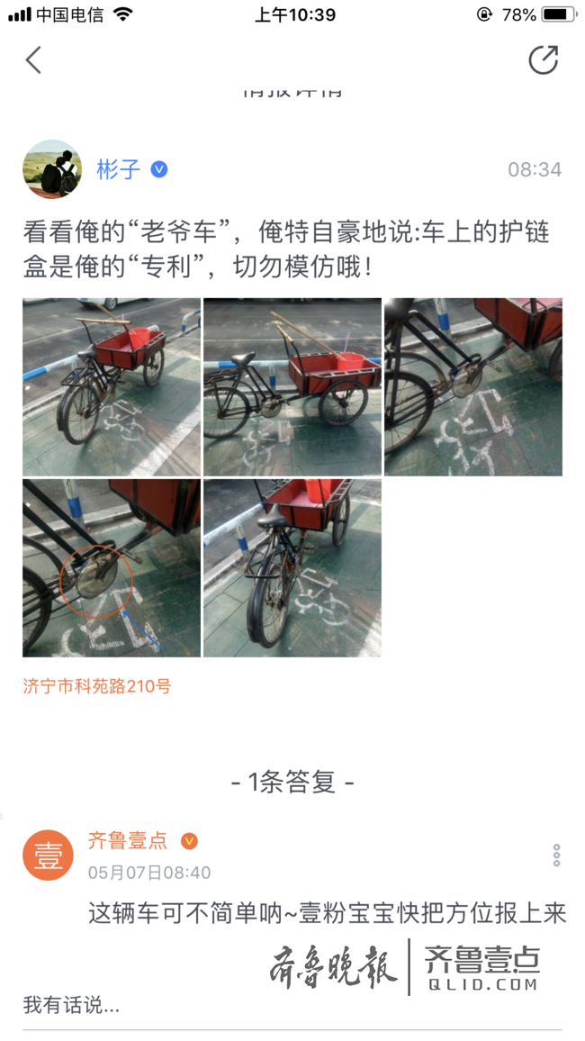 情报员“彬子”8点34分在情报站发布消息:看看俺的“老爷车”。