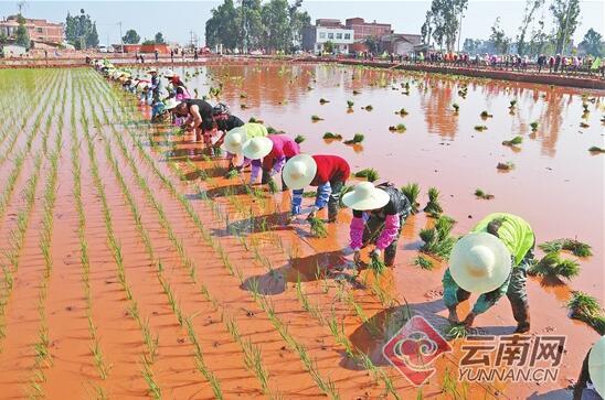 原标题:云南晋宁沙堤村:千人插秧忙 5月1日的沙堤村委会余家沟下村,水汪汪的稻田里,一场热闹非凡的千