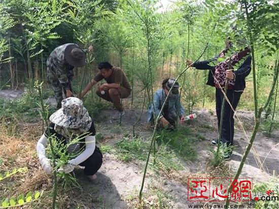 县国税局下基层干部沙拉买提在结亲住户中了解到这一情况,立即反映给带队领导艾克拜尔·吾斯曼。第二天一大早,艾克拜尔·吾斯曼组织10名下基层干部带着剪刀、锄头等工具来到努斯马汗·依斯马依家,帮助她家的树苗修枝除草。当天的气温很高,但下基层干部们边干活边与村民唠家常,宣传党的十九大精神和惠民政策,完全忘记了炎炎烈日。零散的枝条在小剪刀的舞动和线条的牵拉下,不一会儿就变得非常的工整和洁净。经过一上午的辛勤劳动,努斯马汗·依斯马依家的5亩树苗被全部修剪完毕。