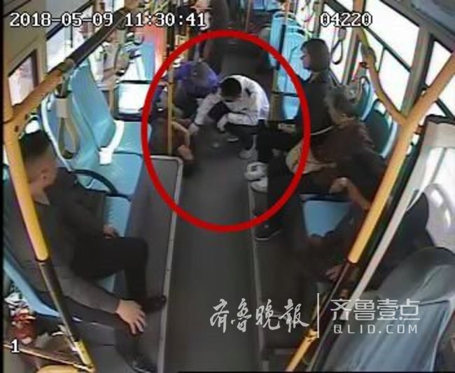 济南一名老年女乘客车上突然呕吐,公交司机热心照顾