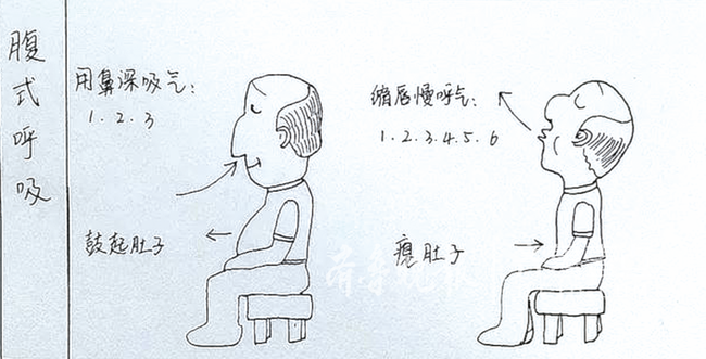 在呼吸内科护士站上,记者看到几组生动有趣的漫画整齐地摆放着,如何取大小便标本,如何呼吸锻炼等都用形象的漫画表现出来,共有“缩唇呼吸”、“腹式呼吸”、“呼吸体操”、“做雾化”、“使用吸入型药物”等呼吸内科常用治疗方案。“患者入院的时候我们都针对病情发一份,利用率非常高。”赵静说。
