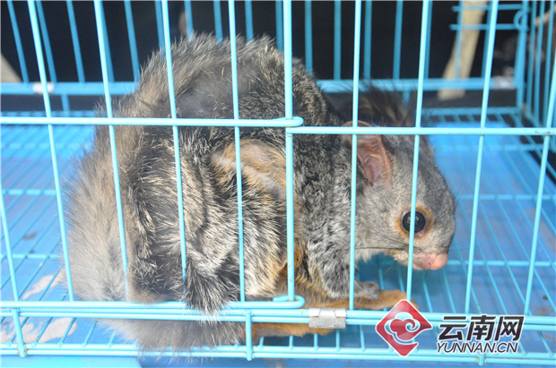 云南网讯(记者 杨之辉 摄影 姚俊伟)一只比“松鼠”大、长得又像松鼠的动物在树上引发群众围观,云南省新平县森林公安局接警后,为确保小动物和群众的安全,将其救援到救助笼。没想到这只大“松鼠”竟是霜背大鼯鼠,属“三有”保护动物。
