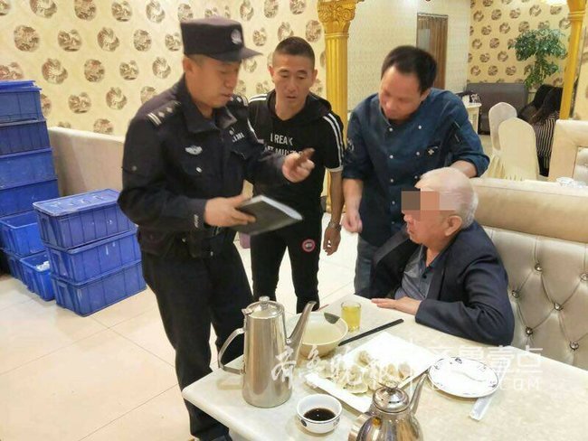 济南一老人餐馆吃完饭后自称迷路,巡警救助送其回家