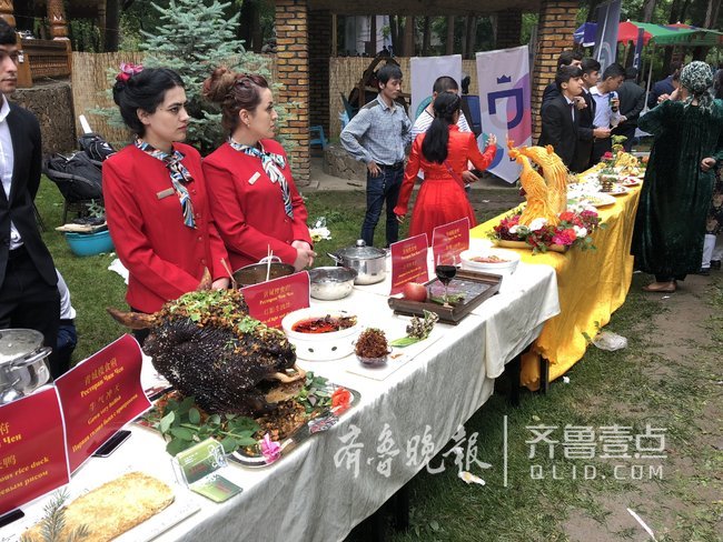 美食节上自然少不了中餐。在杜尚别经营12年中餐馆的肖永海带来的菜品是蕨根粉、西红柿鸡蛋、甜辣黄瓜、烤鸭……