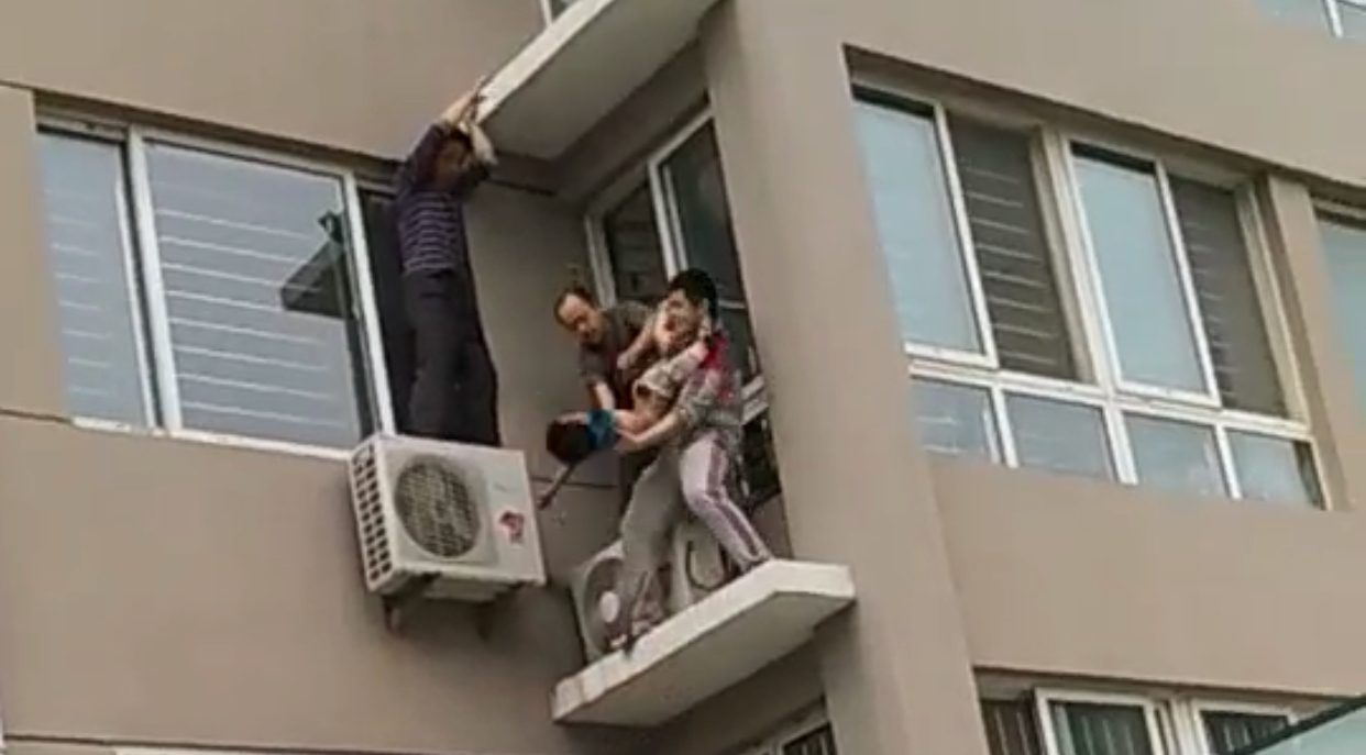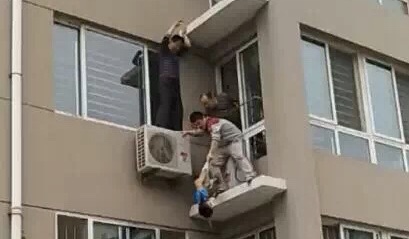 山东潍坊男孩四楼坠下,小伙儿二楼一把拽住