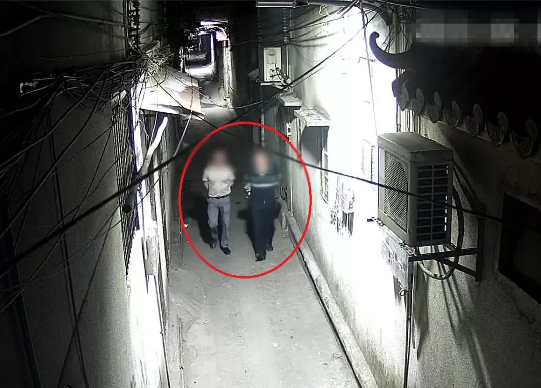 民警在一段监控画面中发现了该两名男子的身影。画面中,该两名男子由于不熟悉周围道路环境,走出被盗现场的楼道后转左走,走几步后方才发现是断头路马上折返。接下来,两名男子的表现,令民警啼笑皆非:只见两名男子在步行至监控探头下方位置时,其中一名男子拿出手机遮挡住面部,另一名男子则脱下眼镜,用右手不停搓揉自己的脸部。