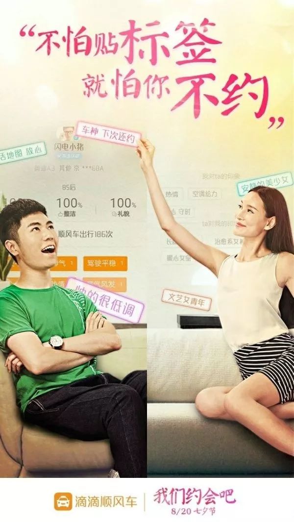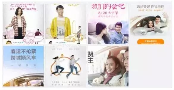 有业内人士对滴滴此前发布的几幅广告图进行了分析,发现每一张图片上的主角均为一男一女(车主多为男性),两者关系融洽,而打出的广告语“我们约会吧”“遇见美好 你我同行”等,坐顺风车出行,被塑造成一段充满温情浪漫的旅程。