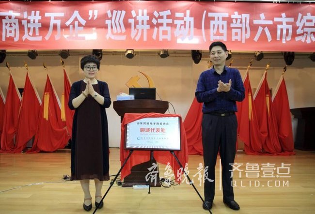 仪式上,吕亚萍、刘德云为山东省跨境电商协会“聊城市技师学院副会长单位”揭牌;耿冰天、侯敏为山东省跨境电商协会“聊城代表处”揭牌。