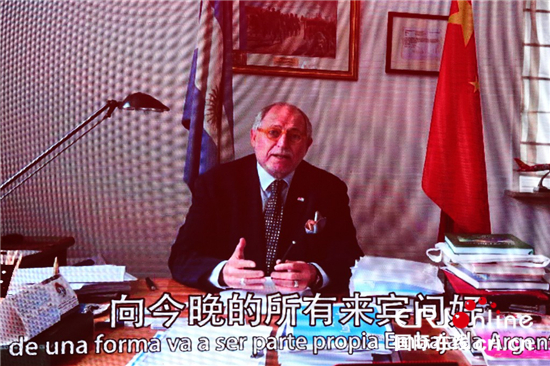 因公务原因不能出席开幕式的阿根廷驻华大使迭戈·拉米罗·盖铁戈录制视频向文化节组织者和参与者致以问候。盖铁戈大使表示,文化交往是维系中国和阿根廷人民了解与互信的重要纽带,本次活动向中国民众介绍阿根廷特色的饮食文化和舞台艺术,希望通过活动的举办进一步促进中阿友好交往。