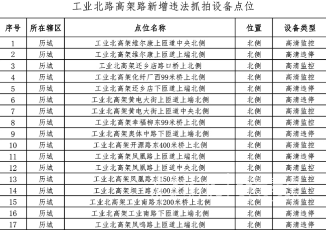 原标题:@济南老司机:工业北路快速路新增了75处电警抓拍 23日,最新一批新增电警点位公示在济南交警