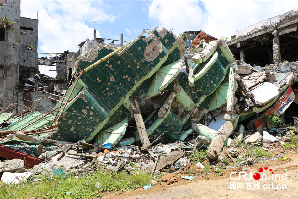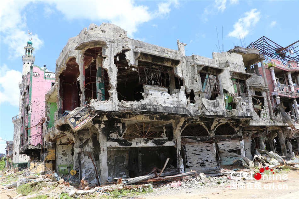 国际在线报道(中国国际广播电台记者 王化雨):一年以前的5月23日,菲律宾政府军和警察在南部棉兰老岛南拉瑙省首府马拉维同“伊斯兰国”恐怖组织展开了持续数月之久的冲突。一年后再次走进那场反恐战争的主战区,发现这里的时间似乎停留在7个月前战争胜利的那个时刻,满目的疮痍依然可以让人清楚的感受到当时战事的惨烈。
