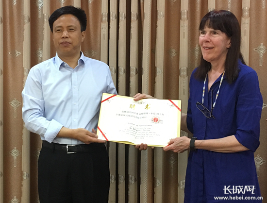 原标题:美国玛格丽特·卡尼博士考察“巨鹿宋城”文化遗址 巨鹿县长郑更须为玛格丽特·卡尼博士颁发“巨鹿