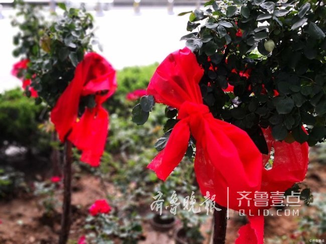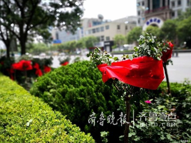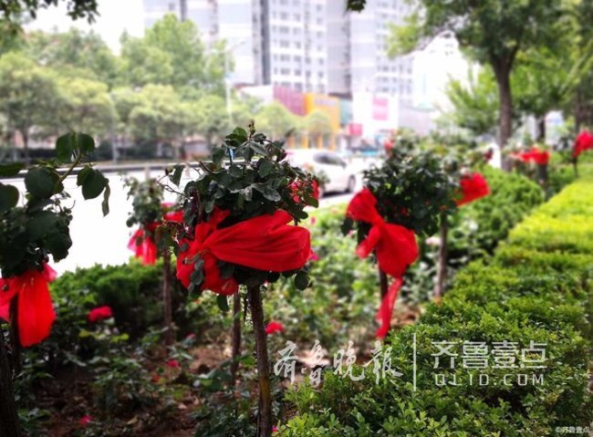 情报站|济南街头绿化带,月季花扎上红围巾,咋回事?