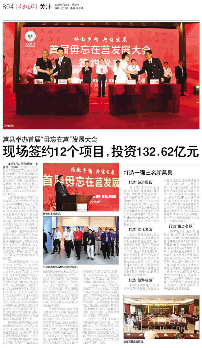 原标题:莒县举办首届“毋忘在莒”发展大会,签约12个项目