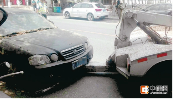 中原网讯(记者 汪永森 实习生 刘旭 通讯员 王保喜 文/图)昨日,两辆在淮南街停放一年之久的“僵尸车”终于被交警部门拖走处理,所占道路恢复整洁通畅。